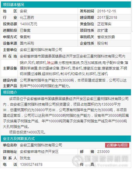 安徽三星樹脂科技有限公司年產(chǎn)50000噸樹脂技改項目
