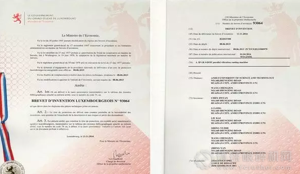 該發(fā)明專利以2015年8月的中國(guó)發(fā)明專利為優(yōu)先權(quán)向國(guó)際專利局申請(qǐng)PCT專利,獲得國(guó)際專利局發(fā)出的具有“新穎性、先進(jìn)性和工業(yè)實(shí)用性”的國(guó)際階段審查結(jié)論;繼而于2016年5月通過(guò)中歐專利代理機(jī)構(gòu)進(jìn)入申請(qǐng)盧森堡國(guó)家階段,并于近日獲得授權(quán)(授權(quán)日:2016年11月11日)。