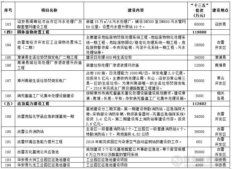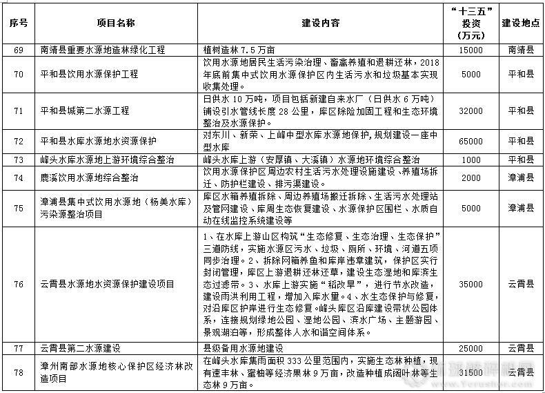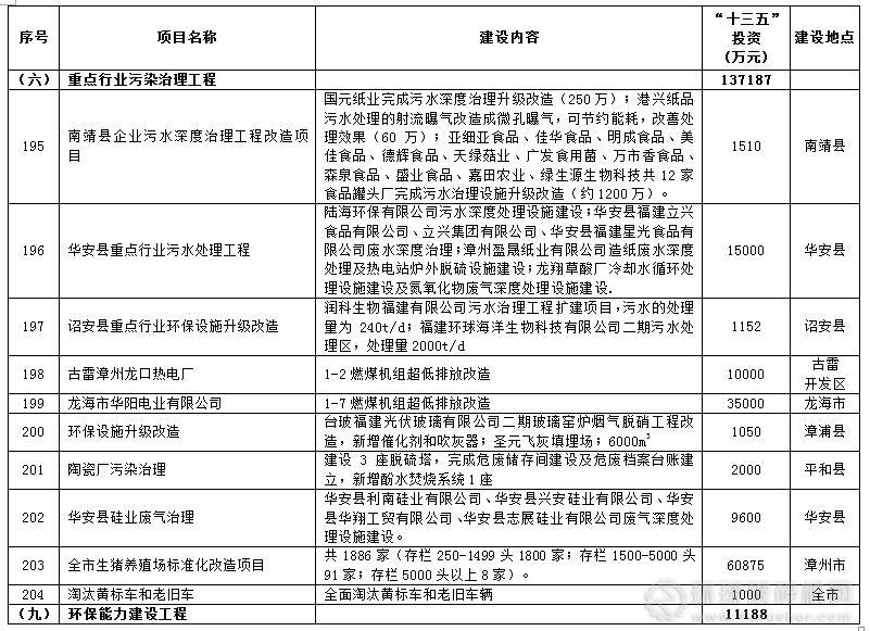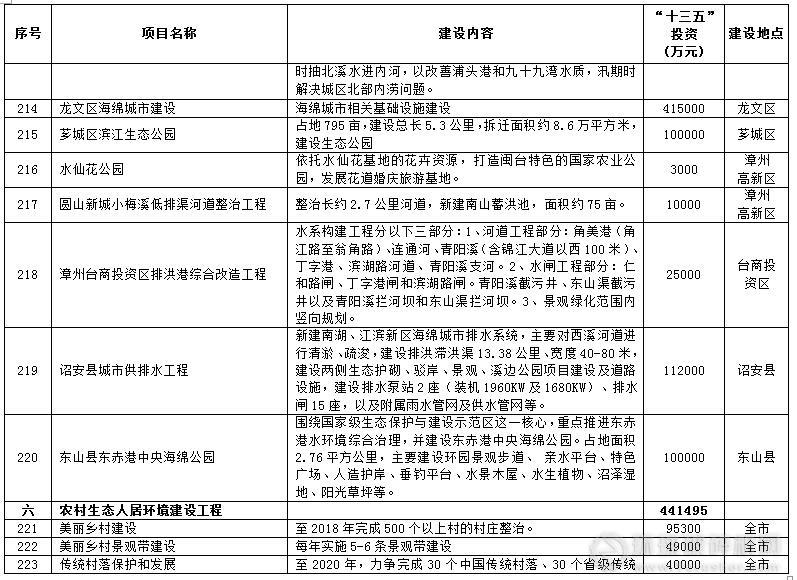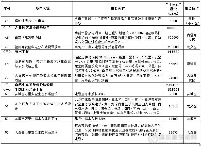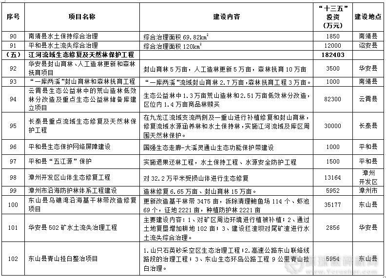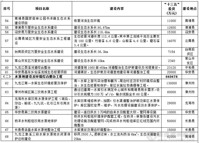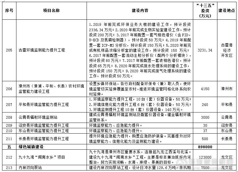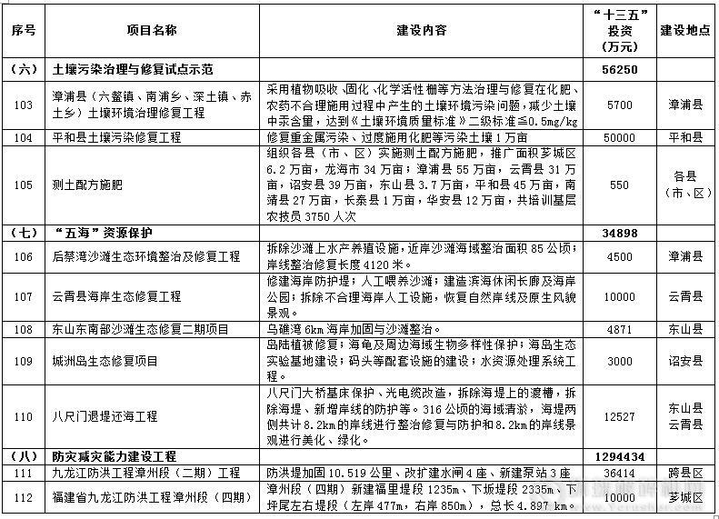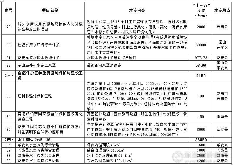 漳州市“十三五”生態(tài)市建設(shè)專項(xiàng)規(guī)劃重點(diǎn)項(xiàng)目表