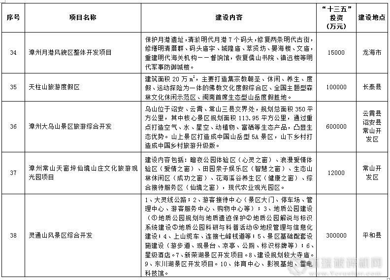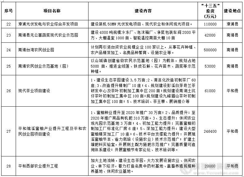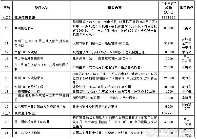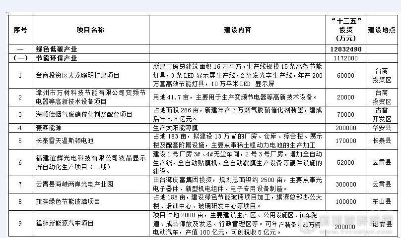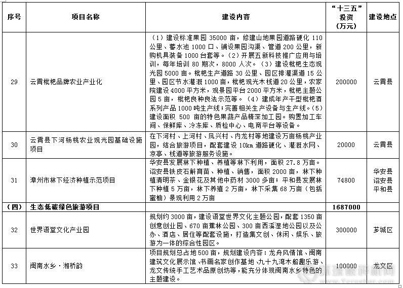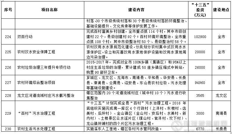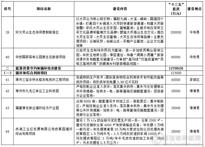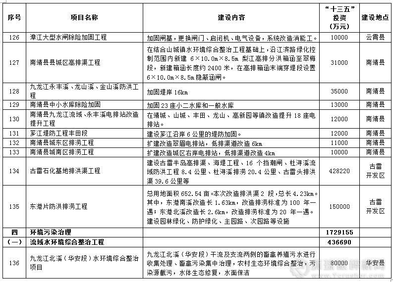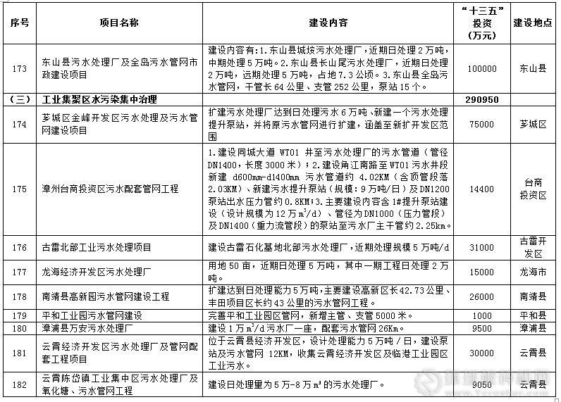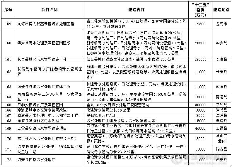 漳州市“十三五”生態(tài)市建設(shè)專項(xiàng)規(guī)劃重點(diǎn)項(xiàng)目表