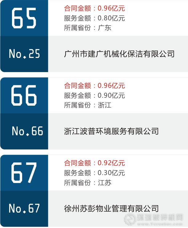 啟迪桑德、北京環(huán)衛(wèi)集團(tuán)、北控水務(wù)、龍馬環(huán)衛(wèi)、玉禾田、勁旅科技、中聯(lián)重科、家寶園林、潔亞清潔、康潔環(huán)衛(wèi)位列“2016年度環(huán)衛(wèi)企業(yè)簽約能力百強(qiáng)榜”前十。詳情如下: