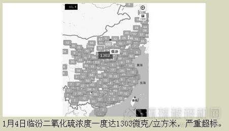 山西省臨汾市1月4日二氧化硫濃度在部分時段、部分區(qū)域嚴重超標,一度達到1303微克/立方米,引起社會各界廣泛關(guān)注。