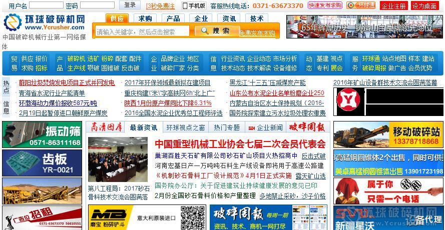 環(huán)球破碎機(jī)網(wǎng)雖然成立不久,但是目前平臺(tái)已集聚全國破碎篩分相關(guān)企業(yè)數(shù)家,幫助企業(yè)線上線下相結(jié)合提高成單量,如杭州海興機(jī)械有限公司、江蘇山寶集團(tuán)、浙江裕融實(shí)業(yè)有限公司、四川江油鐵鷹機(jī)械制造有限公司......開通了該平臺(tái)的會(huì)員。
