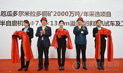 4月15日上午,中信重工機械為厄瓜多爾“總統(tǒng)工程”項目—米拉多銅礦2000萬噸/年采選項目,研制的10.97*5.4m半自磨機、7.9*13.6m球磨機一次試車成功、交付用戶。