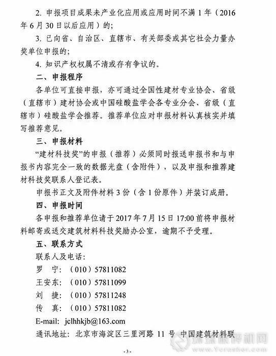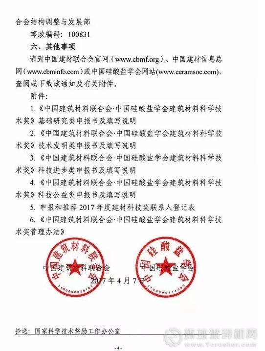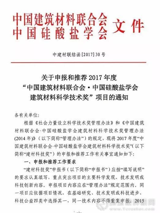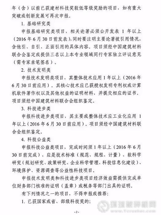 2017年度“建筑材料科學(xué)技術(shù)獎(jiǎng)”項(xiàng)目申報(bào)和推薦工作已經(jīng)開始。2013年湖州新開元碎石有限公司申報(bào)的“機(jī)制砂石細(xì)粉高效回收與廢水循環(huán)利用工藝技術(shù)研究與應(yīng)用”項(xiàng)目獲得了該年度部級科技進(jìn)步獎(jiǎng),已經(jīng)走在砂石骨料行業(yè)前列。各會(huì)員和相關(guān)單位可根據(jù)本單位的情況進(jìn)行申報(bào),以推進(jìn)砂石骨料行業(yè)技術(shù)進(jìn)步及影響力。