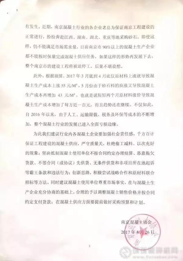 自春節(jié)后,長(zhǎng)江中下游環(huán)境治理,各省市政府對(duì)砂石料場(chǎng)治理力度加大,多個(gè)地區(qū)砂石料場(chǎng)全面關(guān)停,從而造成整個(gè)南京市預(yù)拌混凝土行業(yè)陷入“斷糧”困境。價(jià)格更是急劇上升,僅砂石料這兩項(xiàng)成本從2015年的85元每方漲到現(xiàn)在的170元每方,漲幅高達(dá)200%。到幾年5月份已經(jīng)發(fā)展到現(xiàn)金采購(gòu)都無(wú)法買(mǎi)到砂石,預(yù)付幾百萬(wàn)到上游的石料開(kāi)采企業(yè)半個(gè)月都排不上船的情況時(shí)有發(fā)生。