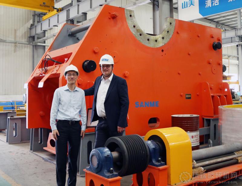 來(lái)訪客人還在山美股份相關(guān)領(lǐng)導(dǎo)的陪同下,參觀了山美股份的生產(chǎn)車間,重點(diǎn)了解了建筑垃圾資源化處理設(shè)備的生產(chǎn)情況,包括移動(dòng)式處理設(shè)備,反擊式破碎機(jī),振動(dòng)篩等。德國(guó)哈茲馬克公司副總Nijland先生饒有興趣與山美股份生產(chǎn)的大型顎式破碎機(jī)JC663合了影。