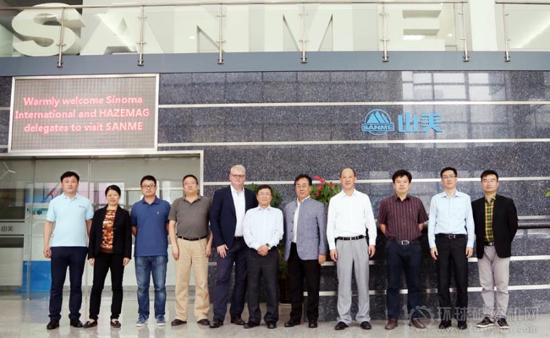 2017年5月12日,德國(guó)哈茲馬克公司及天津水泥設(shè)計(jì)院相關(guān)領(lǐng)導(dǎo)到山美股份參觀考察,并與山美股份董事長(zhǎng)楊安民、副總經(jīng)理張?jiān)獎(jiǎng)P、技術(shù)總工程師袁海生和山美國(guó)際(新加坡)公司CEO崔小兵等領(lǐng)導(dǎo)就建筑垃圾資源化處理進(jìn)行了座談。