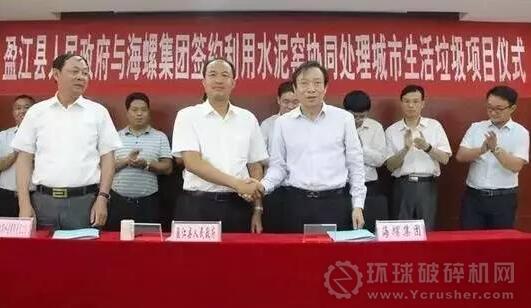 2017年6月2日,海螺創(chuàng)業(yè)與盈江縣人民政府、盈江海螺在盈江縣行政中心正式簽署《盈江縣利用水泥窯協(xié)同處理城市生活垃圾項目合作協(xié)議》。該項目擬建1條日處理200噸生活垃圾處理系統(tǒng)及相關(guān)的配套設(shè)施。