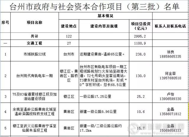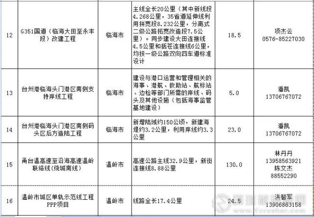 浙江臺州第三批PPP項(xiàng)目推介表(附聯(lián)系方式)