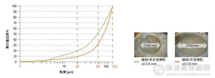 目前最先進的機制砂生產(chǎn)技術(shù)是VSI整形和濕式或干式分級,以降低總細(xì)粒含量。然而,我們相信,并且我們的研究也顯示:通過改善機制砂細(xì)粒(≤0.125mm)的特性,可以進一步提高混凝土的性能。