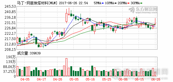 建筑質(zhì)料提供商Martin Marietta Materials Inc(NYSE:MLM)曾暗示,公司已經(jīng)同意以16.25億美元的現(xiàn)金收購私人骨料公司Bluegrass Materials。交易估量將于四季度完成,幷將提升交易完成后首年的每股收益和自由現(xiàn)金流。Martin Marietta股價(jià)2017年上漲3%,同期標(biāo)普500指數(shù)(SPX)上漲9%。