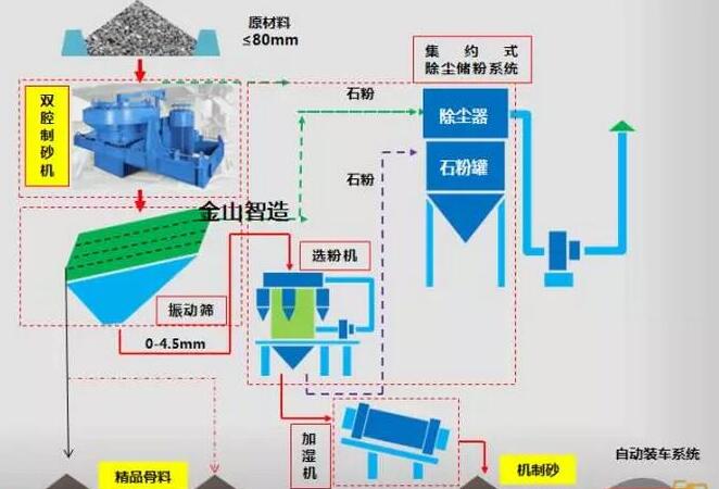 此次會議上鑫金山智能推出兩套機制砂系統(tǒng),一套是針對混凝土市場需求的“砂石同出”系統(tǒng),使用的是德國原裝的“雙腔”制砂機,該系統(tǒng)具有動力選粉、一機多用、出砂率高(成品達50%以上)等優(yōu)勢。另一套是針對干混砂漿市場需求的“精品機制砂”系統(tǒng),使用的是德國原裝的“研磨”制砂機,該系統(tǒng)具有工藝簡潔、耗能低(單電機配置、耗能降低40%以上)、出砂率高(成品達90%以上)等優(yōu)勢。這兩套系統(tǒng)的成功推出不僅是礦山企業(yè)的福音,降低成本,提高產(chǎn)量和質(zhì)量,從而直接增加企業(yè)利潤,同時其特有的干法生產(chǎn)工藝,可以做到真正的“零污染”,響應國家“既要金山銀山,又要綠水青山”的政策號召。