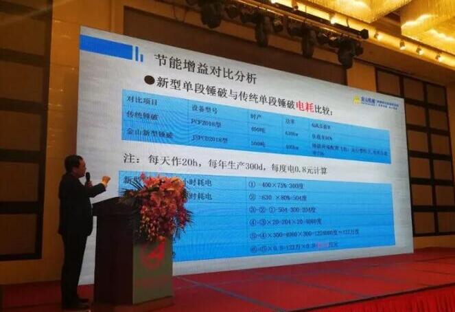 在此次會議上,鑫金山智能總經(jīng)理裴尚作了題為《走進砂石行業(yè)“大”時代,新型單段錘破“一機多用”-助推砂石、水泥行業(yè)轉(zhuǎn)型升級》的主題報告。