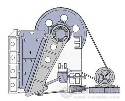 顎式破碎機廣泛應用于礦山、冶煉、建材、公路、鐵路、水利和化學工業(yè)等眾多領域,在繁雜的破碎工序中處于“第一把刀”的位置,破碎抗壓強度不超過320兆帕的各種物料,主要由六大部分組成:機架、傳動部分(電機、飛輪、皮帶輪、偏心軸)、破碎部分(顎床、動顎板,定顎板)、保險裝置(肘板、彈簧拉桿部)、調整部分、集中潤滑裝置。