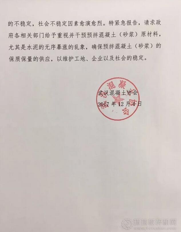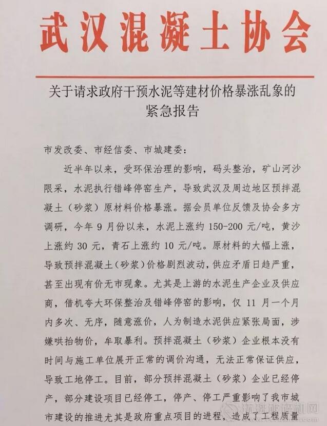 目前,部分預(yù)拌混凝土(砂漿)企業(yè)已經(jīng)停產(chǎn),為此,武漢混凝土協(xié)會(huì)請(qǐng)求政府各相關(guān)部門給予重視并干預(yù)預(yù)拌混凝土(砂漿)原材料,尤其是水泥的無序暴漲的亂象,確保預(yù)拌混凝土(砂漿)的保質(zhì)保量的供應(yīng),以維護(hù)工地、企業(yè)以及社會(huì)的穩(wěn)定。