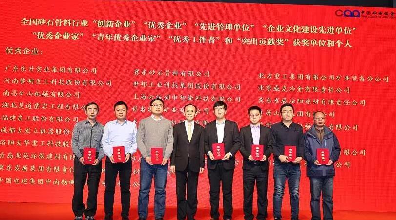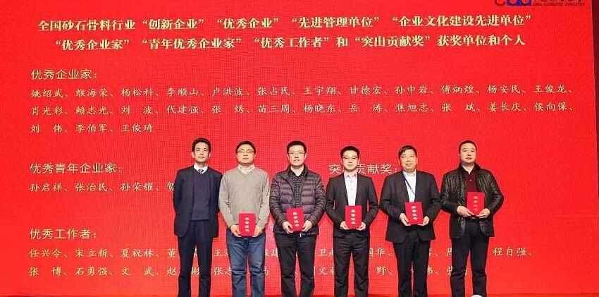 本次大會(huì)表彰了全國(guó)砂石骨料行業(yè)的“優(yōu)秀企業(yè)”,“優(yōu)秀企業(yè)家”和“優(yōu)秀工作者”。南昌礦機(jī)榮獲“優(yōu)秀企業(yè)”稱號(hào),董事長(zhǎng)李順山先生榮獲“優(yōu)秀企業(yè)家”稱號(hào),趙彬先生榮獲“優(yōu)秀工作者”稱號(hào)。這是南昌礦機(jī)在以“綠色礦山,節(jié)能環(huán)保,轉(zhuǎn)型升級(jí)”的背景下,抓住機(jī)遇,加大研發(fā)投入,為砂石骨料行業(yè)轉(zhuǎn)型升級(jí)貢獻(xiàn)南礦智慧的最高榮譽(yù)。