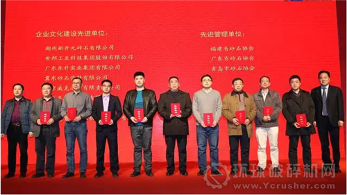 17、在我國砂石骨料產(chǎn)業(yè)轉(zhuǎn)型升級和創(chuàng)新發(fā)展過程中,樹立榜樣,引領推動行業(yè)發(fā)展。中國砂石協(xié)會對行業(yè)內(nèi)具有重大科技創(chuàng)新、科技進步、管理成效顯著的企業(yè)和單位以及對行業(yè)做出突出貢獻的企業(yè)家和工作者進行了表彰,授予砂石行業(yè)”創(chuàng)新企業(yè)”“優(yōu)秀企業(yè)”“先進管理單位”“企業(yè)文化建設先進單位”“優(yōu)秀企業(yè)家”“優(yōu)秀青年企業(yè)家”“優(yōu)秀工作者”和“突出貢獻獎”等榮譽稱號。