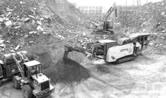 在許昌某一公司拍攝的建筑垃圾處置設(shè)備在處理建筑垃圾,處理后的建筑垃圾可以生產(chǎn)出能再次利用的泥土、碎石塊、鋼鐵等建筑材料。這些材料可以廣泛應(yīng)用到制磚、修路等工程上。