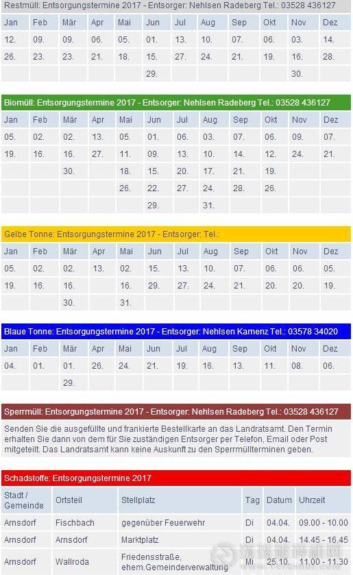 2017年垃圾清理日程表