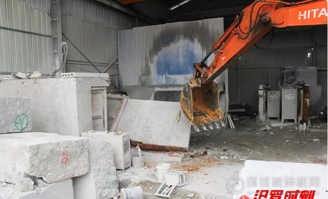 每到一處,執(zhí)法人員拉起警戒線,電力工作人員強制剪斷企業(yè)違法接入的電線,隨后,指揮人員指揮挖土機對違法麻石加工企業(yè)功能性建筑進行拆除。執(zhí)法工作人員告訴記者,被拆除的企業(yè)在關(guān)停期間均存在違法生產(chǎn)行為,且沒有合法手續(xù)和環(huán)保設(shè)施,嚴重污染環(huán)境。記者也在現(xiàn)場看到,每一家麻石加工企業(yè)前后均有明顯的污染環(huán)境行為,污水橫流,廢料亂倒,周圍的草木磚瓦上明顯有一層厚厚的灰塵。