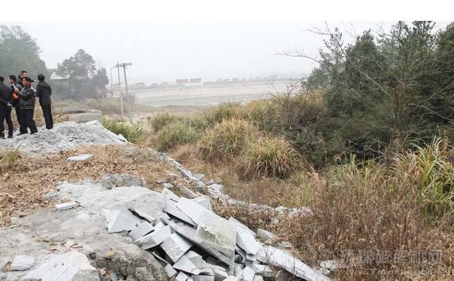 麻石廢料傾倒在水庫邊