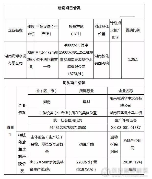 1月31日,湖南省經(jīng)信委發(fā)布湖南海螺水泥有限公司4000t/d熟料生產(chǎn)線產(chǎn)能置換方案。根據(jù)方案,該生產(chǎn)線中1500t/d按1.25:1減量置換湖南辰溪華中水泥有限公司1875t/d產(chǎn)能。
