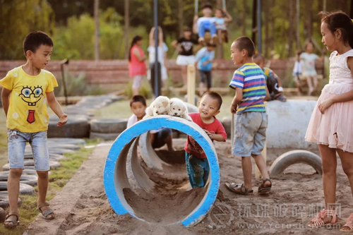 ▼ 利用建設(shè)廢料打造生動(dòng)而豐富的鄉(xiāng)村世界,沙坑和水泥管