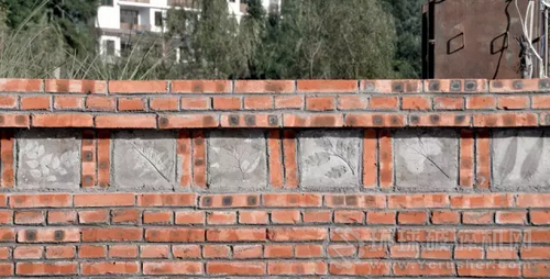 ▼ 小朋友參與制作的水泥磚砌在了樂園的矮墻上