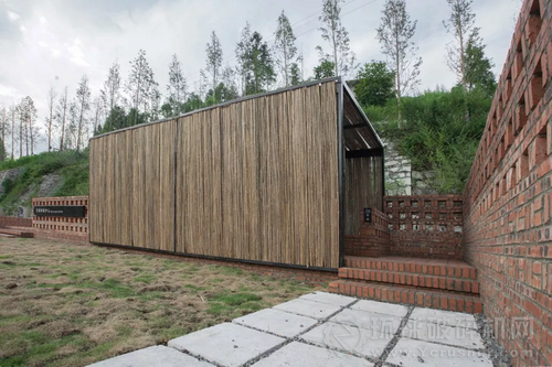 建筑主體為紅磚基礎(chǔ)、方鋼框架、竹跳板表皮三重結(jié)構(gòu)。
