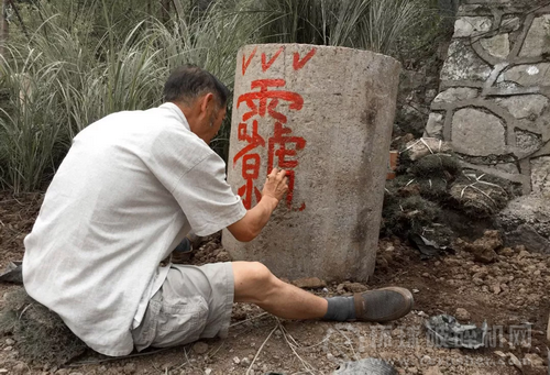 ▼ 老支書是村里的文化人,他坐在地上一個(gè)多小時(shí),在水泥管上畫神符。他認(rèn)真的神態(tài),讓我們?cè)敢庀嘈胚@古老的信仰會(huì)有神奇的力量。(共兩個(gè),分別寓意安神和保平安)