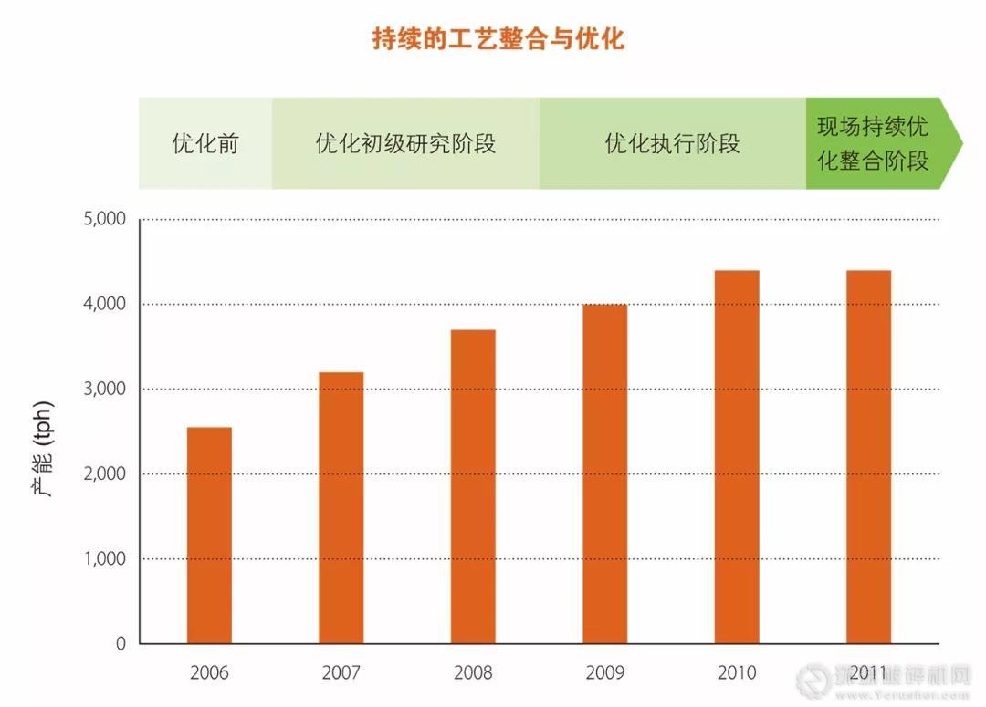 產(chǎn)量的大幅增加和整個(gè)生產(chǎn)系統(tǒng)的優(yōu)化也大大提高了運(yùn)行的能源效率,從而降低了噸產(chǎn)品能耗。
