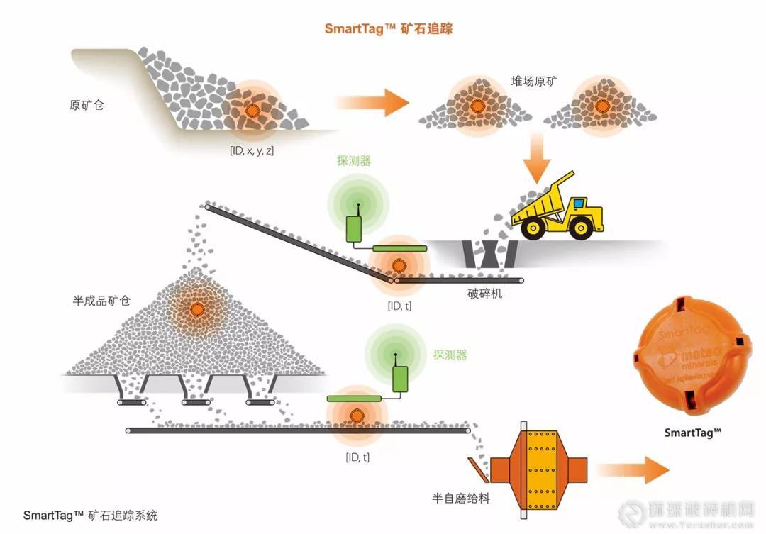 不同礦石類(lèi)型在從礦山到選廠(chǎng)的整個(gè)工藝過(guò)程中會(huì)被分類(lèi)和跟蹤。最重要的是,磨機(jī)的給料已在采礦階段確定了礦石特性,并會(huì)在下游工藝中持續(xù)被跟蹤。美卓PTI開(kāi)發(fā)了一款SmartTag?礦石跟蹤系統(tǒng),可以從采礦到破碎機(jī)直至最終給入磨機(jī),全程跟蹤礦石。