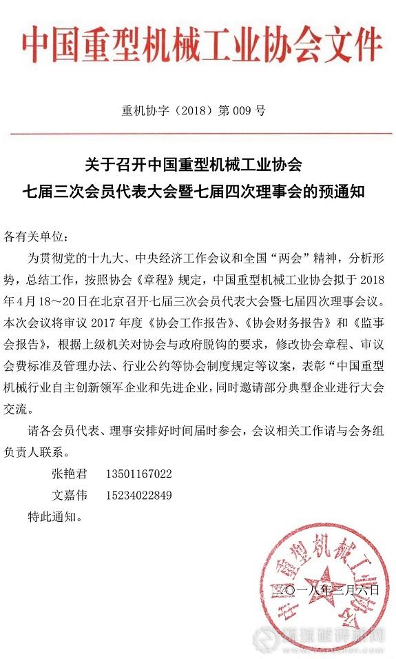 關(guān)于召開中國(guó)重型機(jī)械工業(yè)協(xié)會(huì)七屆三次會(huì)員代表大會(huì)暨七屆四次理事會(huì)的預(yù)通知