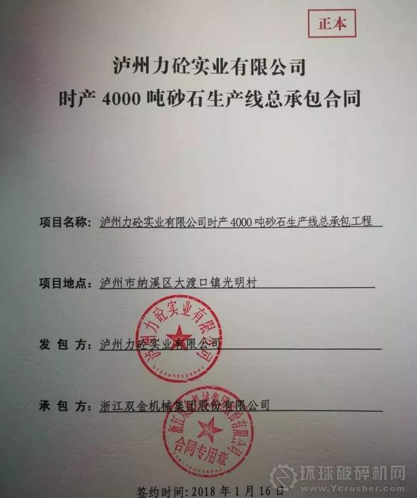 2018年1月16日,瀘州力砼實(shí)業(yè)有限公司時(shí)產(chǎn)4000噸砂石生產(chǎn)線項(xiàng)目總承包工程正式簽約。
