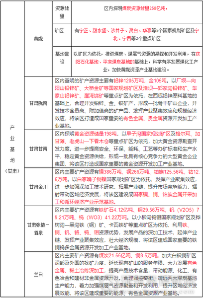 此外,金、釕、碲、鉻、鋅、鎢、稀土等金屬礦產(chǎn)及普通螢石、鉀鹽等非金屬礦產(chǎn)查明資源儲(chǔ)量位居全國(guó)前五位。資源儲(chǔ)量分布高度集中,石油89%集中于長(zhǎng)慶油田,煤83%集中于隴東地區(qū),鐵礦石90%集中于張掖、酒泉、甘南3個(gè)市州,鎳、鉑族99%和銅74%、鈷92%集中在金昌市,鉛鋅91%、銻91%集中在隴南市,鎢99%集中在張掖、酒泉2個(gè)市,金在隴南、甘南2個(gè)市州的資源儲(chǔ)量占甘肅省總儲(chǔ)量的72%。