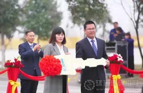 徐工進(jìn)出口公司副總經(jīng)理劉權(quán)向東燁國(guó)際總經(jīng)理鄭中霞交付金鑰匙