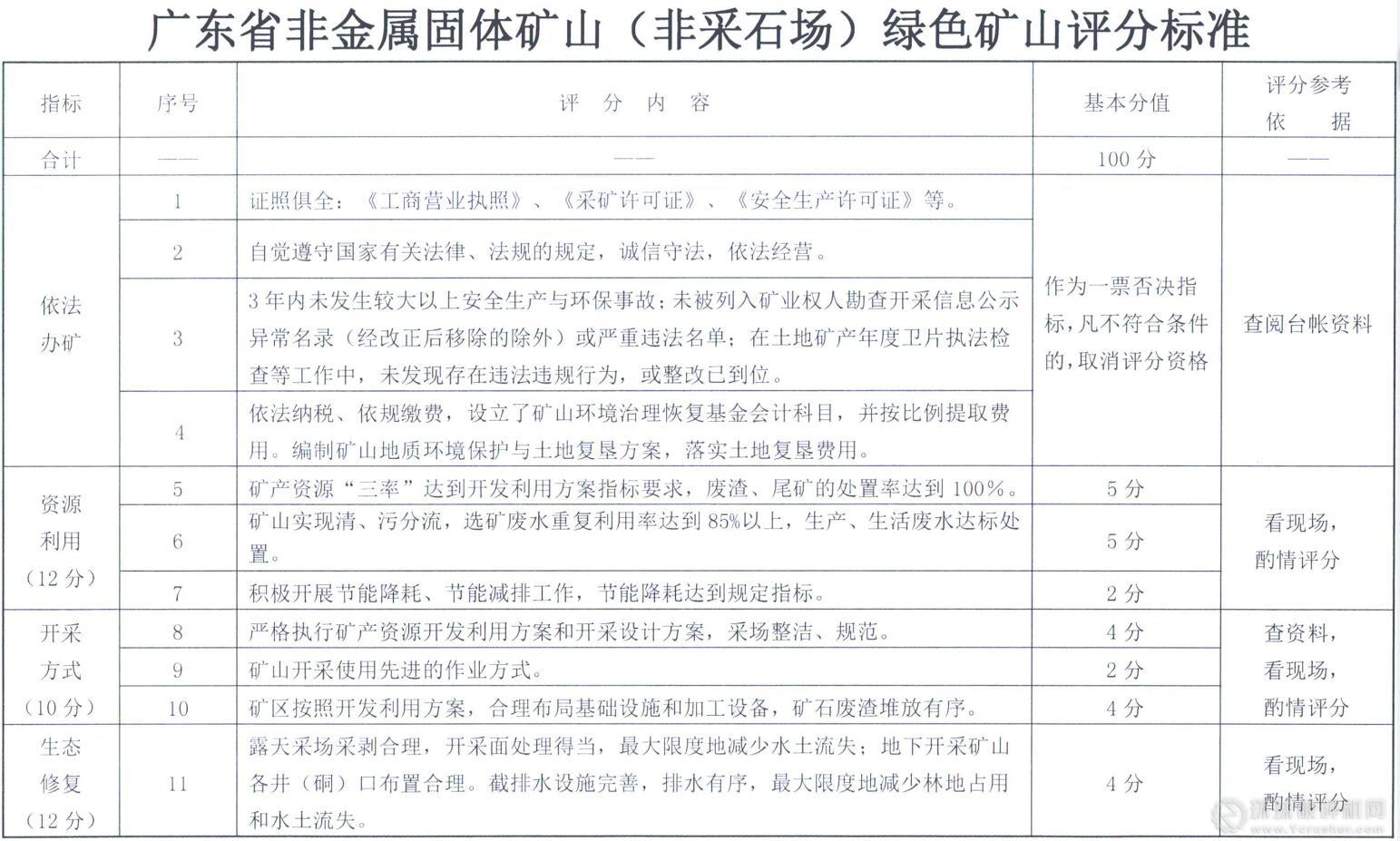 3、廣東省非金屬固體礦山(采石場除外)綠色礦山建設要求及評估標準