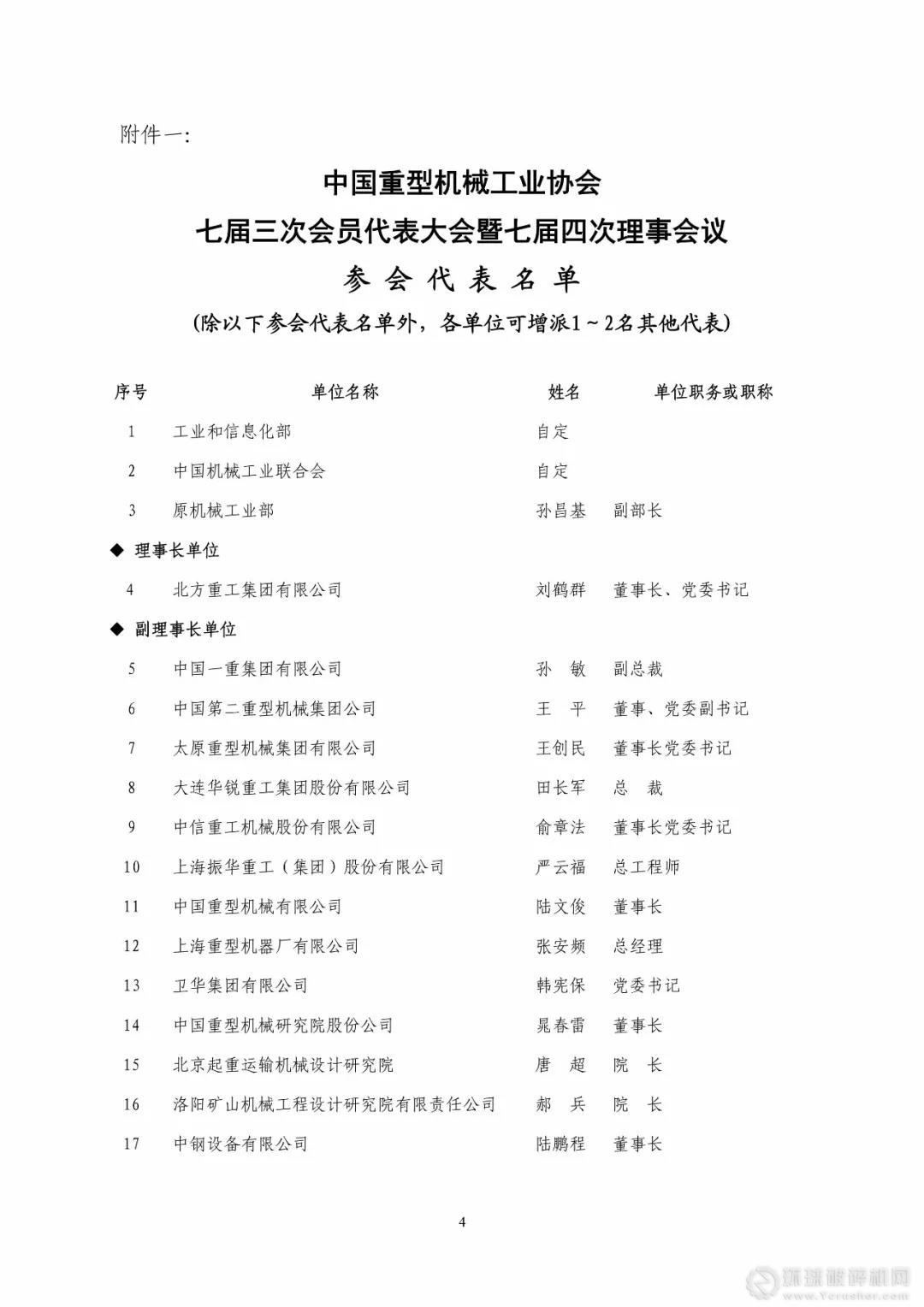 6、參會代表若遇到重要工作,本人不能出席會議,請務必委托其他領導同志或代表出席會議。按照《中國重型機械工業(yè)協(xié)會章程》規(guī)定,理事會成員單位凡兩次不參加理事會議,又不派代表參會的,視同自動退出理事會。