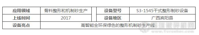 2016年12月紅水河基地項(xiàng)目啟動,華潤廣西大區(qū)領(lǐng)導(dǎo)對南方路機(jī)總部進(jìn)行考察,確定了南方路機(jī)S3-1545干式整形制砂設(shè)備,開始著手籌建制砂線。到2017年9月正式投產(chǎn),目前該生產(chǎn)線穩(wěn)定。