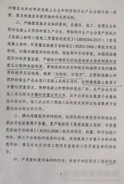 檢查中如發(fā)現(xiàn)有工程結(jié)構(gòu)使用海砂的混凝土,要立即責(zé)令停工,并進(jìn)行返工處理;對于發(fā)現(xiàn)的使用海砂的預(yù)拌混凝土、預(yù)拌砂漿或預(yù)制構(gòu)件生產(chǎn)企業(yè),各建設(shè)行政主管部門要依法依規(guī)對責(zé)任單位采取停業(yè)整頓、清出市場、吊銷資質(zhì)等處罰,并向社會公布處罰結(jié)果,對見證、檢測等履職不到位的相關(guān)參建單位也要按照規(guī)定嚴(yán)肅處理。