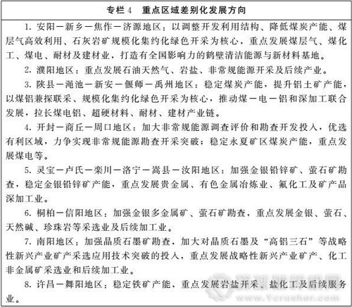 三、優(yōu)勢礦產和重點區(qū)域發(fā)展方向