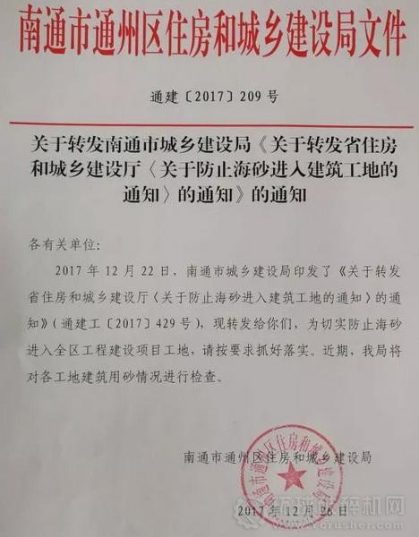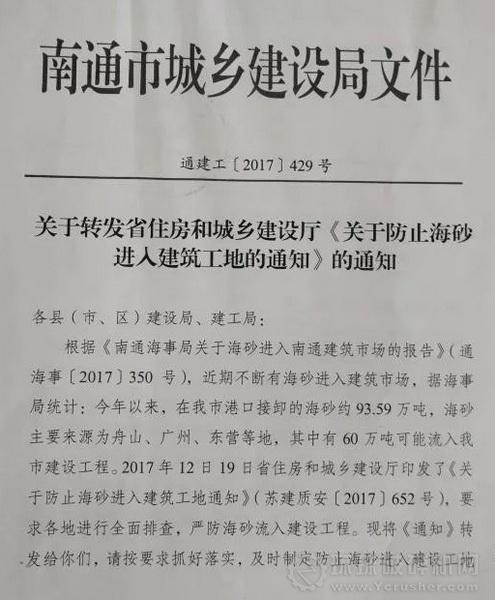 日前,江蘇省住房和城鄉(xiāng)建設(shè)廳印發(fā)了《關(guān)于防止海砂進(jìn)入建筑工地的通知》,通知主要要求如下: