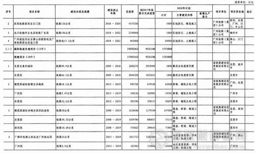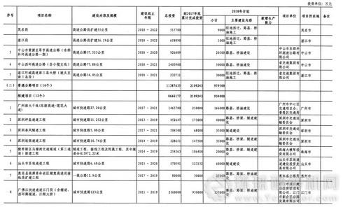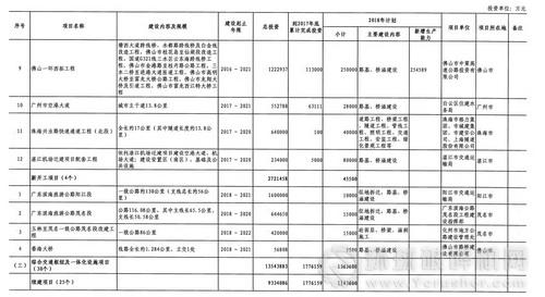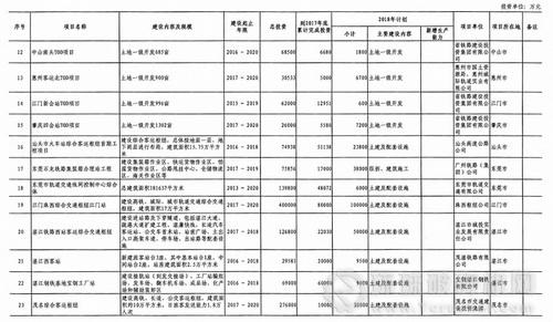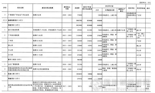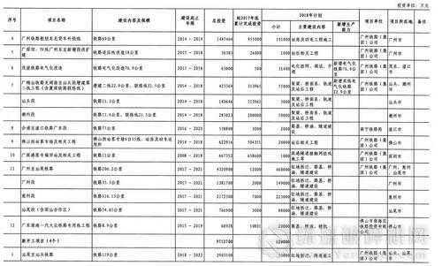 廣東省2018基礎設施工程重點建設項目計劃表12