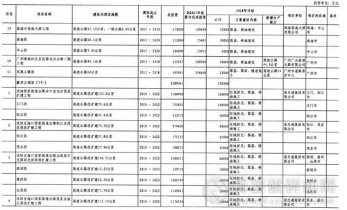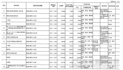 廣東省2018基礎設施工程重點建設項目計劃表19