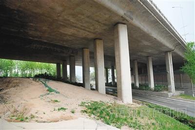 位于朱宏路以西、高鐵線路以北的長(zhǎng)樂(lè)西苑小區(qū),是距離高鐵線路最近的一個(gè)居民住宅區(qū)。小區(qū)和高鐵線路之間的地帶,不僅有綠色的草坪,還栽種有不少喬木,樓群與景觀設(shè)計(jì)相互映襯,遠(yuǎn)遠(yuǎn)望去一片綠色的景象。可是,同樣位于高鐵線路北側(cè),長(zhǎng)樂(lè)西苑小區(qū)對(duì)面的機(jī)場(chǎng)專用高速公路高架橋下景觀卻截然相反。橋下有一處廢品收購(gòu)場(chǎng)所,圍墻外的荒地土堆沒(méi)有覆蓋綠色密目網(wǎng),磚塊瓦礫等