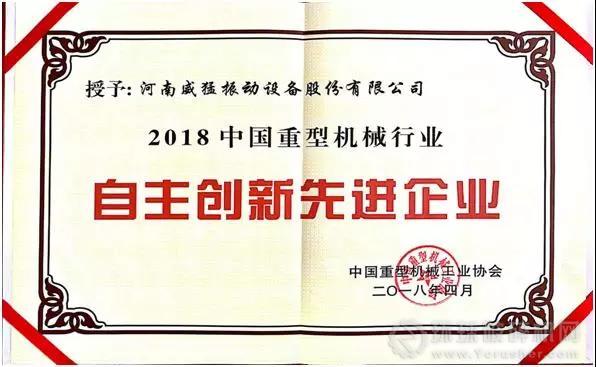 2018年4月,中國(guó)重型機(jī)械工業(yè)協(xié)會(huì)七屆三次會(huì)員代表大會(huì)在北京隆重召開(kāi),威猛股份榮獲2018中國(guó)重型機(jī)械行業(yè)自主創(chuàng)新先進(jìn)企業(yè)榮譽(yù)稱號(hào)。