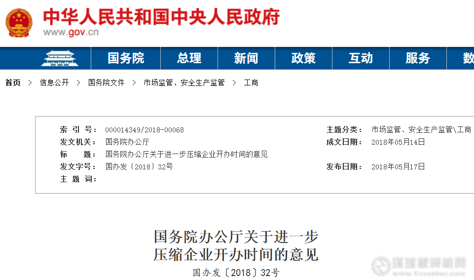 5月17日,國務(wù)院辦公廳發(fā)布《關(guān)于進一步壓縮企業(yè)開辦時間的意見》(國辦發(fā)〔2018〕32號),將進一步簡化企業(yè)從設(shè)立到具備一般性經(jīng)營條件所必須辦理的環(huán)節(jié),壓縮辦理時間。2018年年底前,各直轄市、計劃單列市、副省級城市和省會城市要將企業(yè)開辦時間壓縮一半以上,由目前平均20天減至8.5天(指工作日,下同)以內(nèi),其他地方也要積極壓減企業(yè)開辦時間,2019年上半年在全國實現(xiàn)上述目標(biāo)。