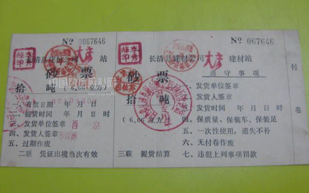 當(dāng)代某建材公司開(kāi)具的砂票