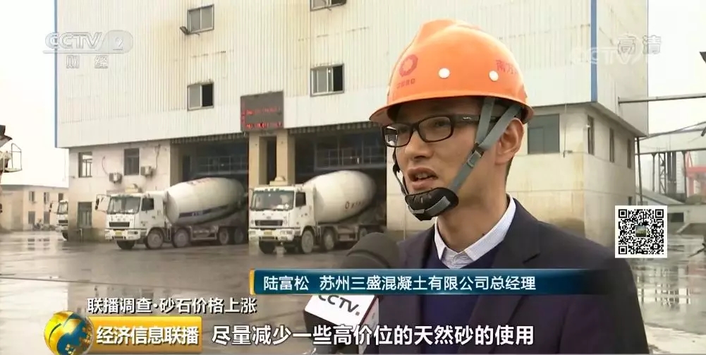 陸富松(蘇州三盛混凝土有限公司總經(jīng)理):我們在不斷嘗試,盡量減少一些高價位的天然砂的使用,用機制砂去代替天然砂。今年調(diào)整后天然砂和機制砂現(xiàn)在比例是二比八。